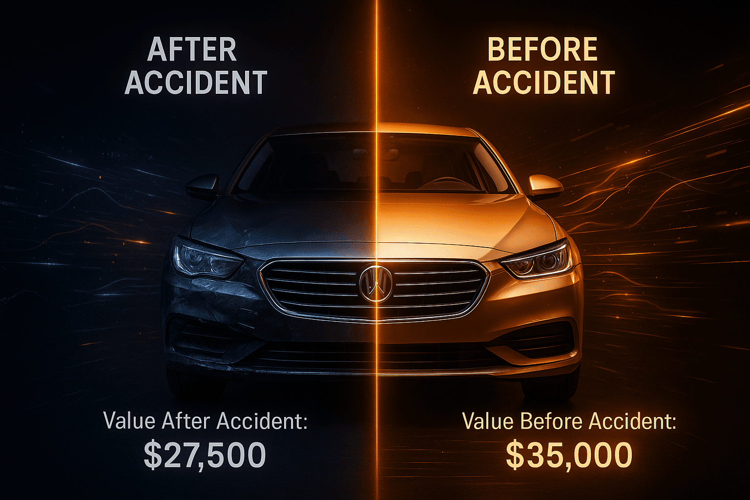 A diminished value claim compensates you for the loss in your car’s resale value after an accident — even after it’s repaired. Buyers see your car’s history report and pay less, and insurers rarely tell you about this hidden loss.